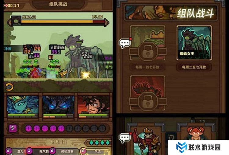 组队挑战让玩家与另一名玩家共同挑战本周的BOSS——蜘蛛女王。玩家可以选择六名英雄一同参战,但需注意,在战斗中,同类英雄能共享增益性技能,而其他英雄只能享受自己的增益效果。