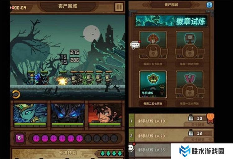 丧尸围城的难度较低,玩家将遭遇大量僵尸的进攻。在此关卡中,主角需顶住僵尸的攻击,确保弓箭手与鱼人在后排能够安全输出与治疗。当主角血量接近底线时,需适当调整战术,确保角色不被轻易击倒。
