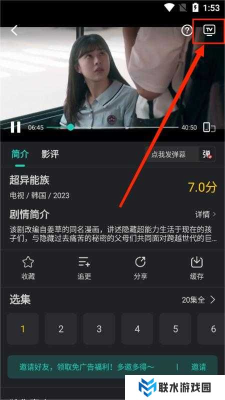 1、打开海鸥影评app,找到想下载的影视剧,进入播放页面,例如超异能族