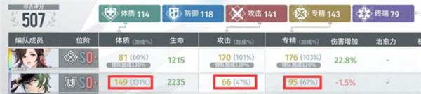4、角色的属性可以影响战斗,比如增伤、格挡、治愈等,需要依据不同关卡的需求进行培养。同时【精神蚀刻】系统也让你能通过提升队长的能力,进一步增强整个队伍的战斗力。