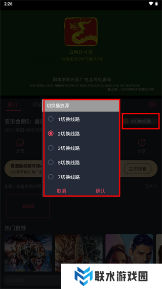 3、如果加载速度过慢,可以点击线路切换,点击“确认”即可