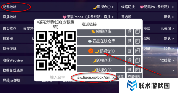 4、然后根据自己的需要来选择源,这里分享的是网上最全的一个接口地址,影视仓可自由选择任意线路。