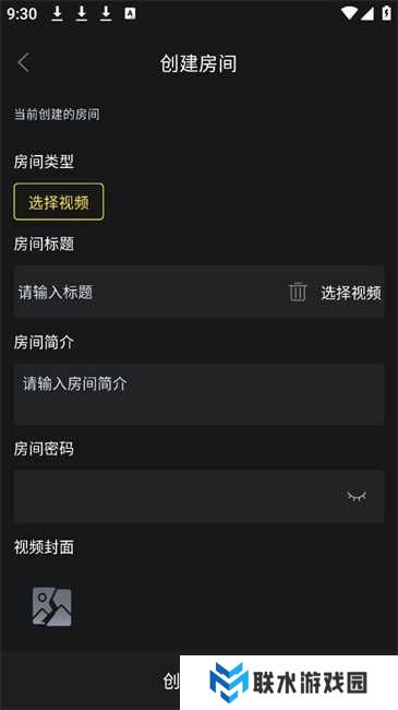 3、进入创建房间页面,如下图在[房间类型]选择需要播映的视频后按照要求逐一填写内容,填完信息后点击下方的【创建房间】即可
