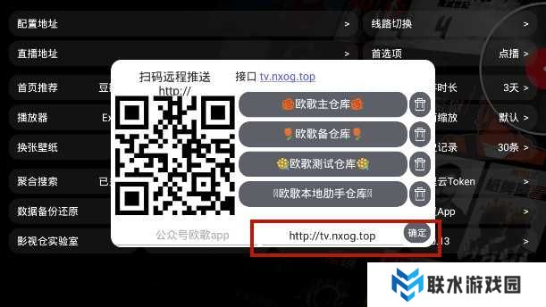 2、进入设置页面后,定位到第一个配置入口,将准备好的配置地址粘贴进去。名称部分可自由填写或留空,随后点击“确认”按钮完成设置。