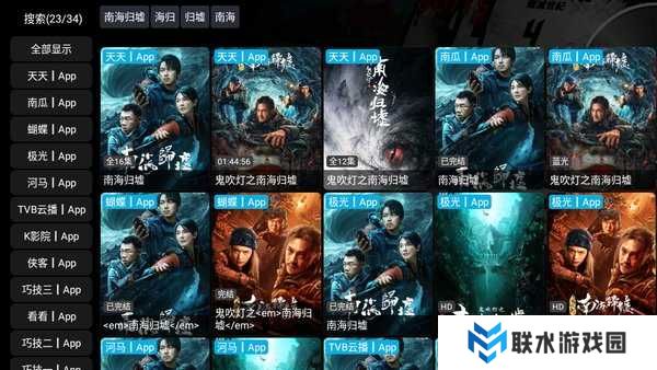 3、完成上述步骤后,软件会自动重启。重启完成后,即可通过搜索功能查找心仪的影视剧,例如输入“南海归墟”,系统将提供多个播放源供选择,点击其中一个即可开始播放。