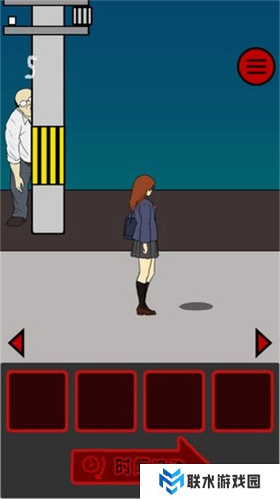 这关非常简单,妹子大胆向前走,不要回头。当痴汉从电线杆后出现时,把猪头放到他前面让他吃掉,妹子就可以安全回家了。
