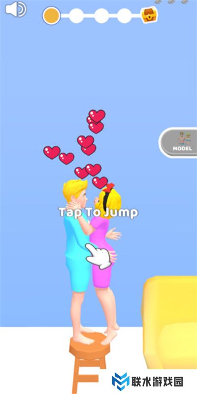 2、通过点击屏幕让情侣翻转前进,别让他们的头碰到地面。
