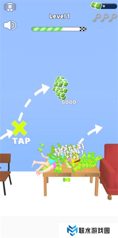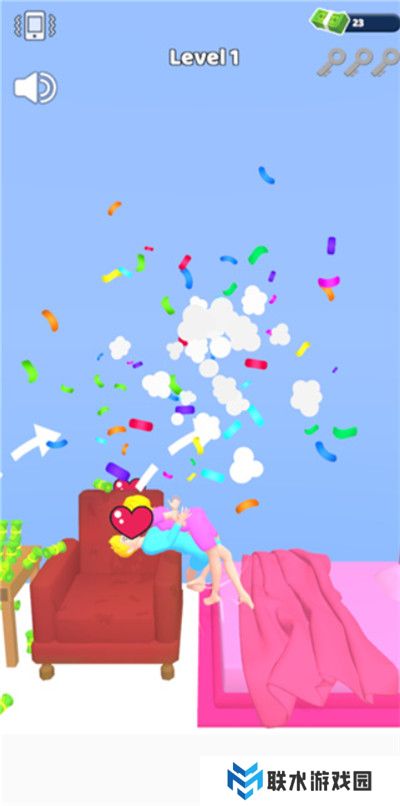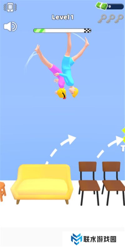 2、虽然操作方式非常直观,只需点击屏幕控制情侣的翻转,但随着障碍的增加,玩家需要更加精准的操作,才能帮助情侣避开危险,顺利到达终点。
