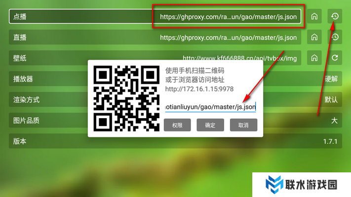 2、通过手机扫描电视屏幕上显示的二维码来快速输入接口地址。