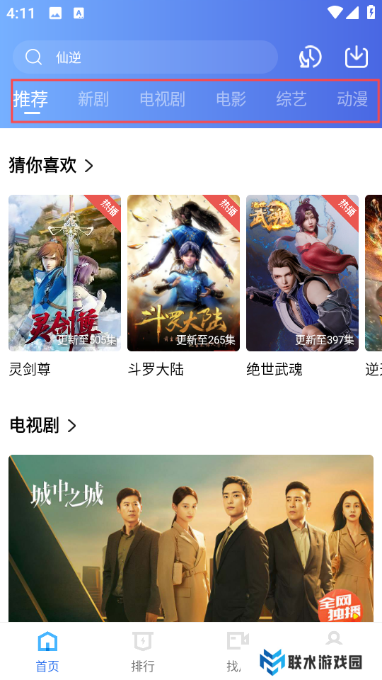 2、在首页上,用户可以浏览到丰富的影视分类,包括电视剧、电影和综艺节目等。