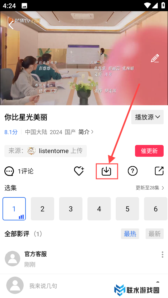 6、通过点击底部箭头所指的按钮,可以将当前影视内容缓存至本地。