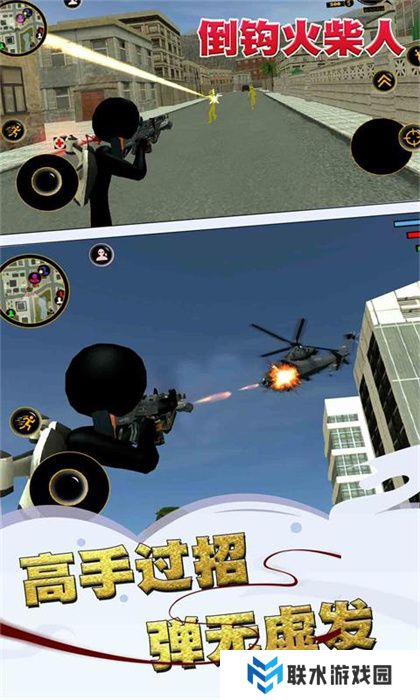 倒钩火柴人是一款刺激的3D动作冒险格斗手游,拥有高清的城市地图和经典的火柴人角色,玩家将在充满危险的城市中展开一场与犯罪分子的殊死对决。游戏中,你将操作灵活的火柴人英雄,使用各种武器,进行海陆空特色的枪战对抗,消灭一切威胁城市安全的罪犯。在游戏中,玩家需要收集和升级不同的武器,通过灵活运用各种装备来击败敌人,并追击逃跑的恐怖分子。你还可以驾驶汽车、摩托车等交通工具来追击敌人,体验紧张刺激的追逐战。同时,游戏内的丰富关卡和挑战模式让玩家的每一次战斗都充满新鲜感与挑战。
