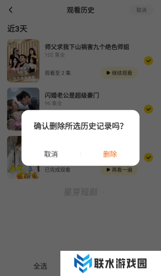登录后,进入“历史”界面,点击右上角的“编辑”按钮,勾选出需要删除的观剧记录,然后一键清除即可。
