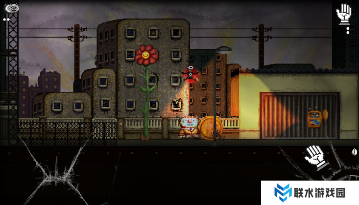 3、熟悉游戏操作,左边滑动屏幕控制角色移动,右边点击屏幕进行跳跃。走到前方的手势图标时,点击进入。