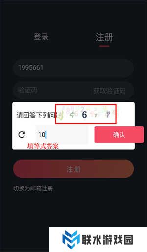 3、然后点击“获取验证码”,需要回答问题如下图,等式为4+6=?,验证码那里需要输入答案10。(遇到看不清楚的数字图案可以点击左侧的刷新按钮,重新获取等式)