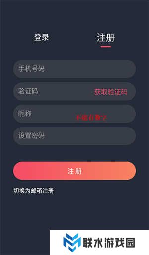 2、有账号密码直接登录即可,首次使用切换为“注册”,输入手机号、昵称以及密码。(注意:昵称里面不能有数字)