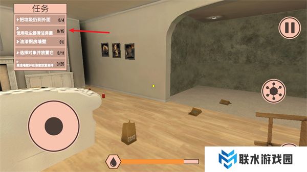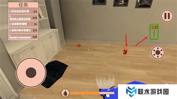 -接下来,点击屏幕右侧的工具栏,切换到不同的工具。首先,拿起吸尘器吧!