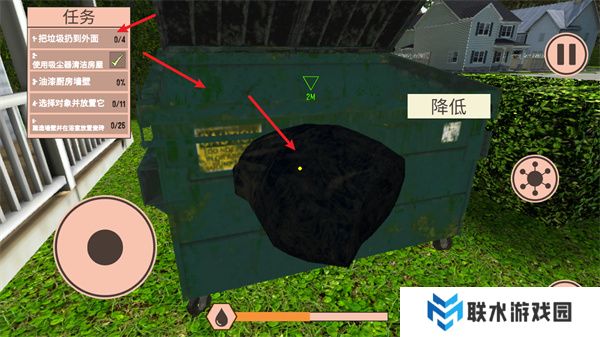 -清理完毕后,捡起地上的*袋,把它们丢进门外的大*桶,完成你的清洁任务!
