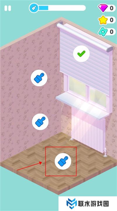 4. 进入新的关卡后,点击指定位置即可开始房间的装饰。