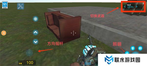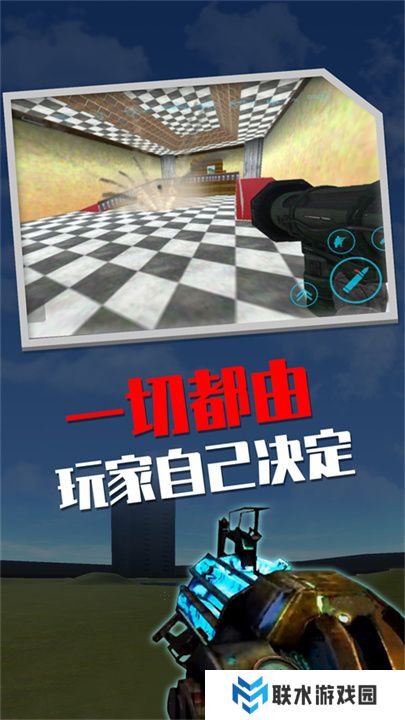 4. 默认武器可用来移动物体,选择需要移动的物体后,长按开火键进行锁定,然后在持续按住的状态下,滑动开火按钮来移动物体。