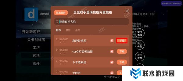 2. 接着会弹出盖瑞模组的模组内容页面,你可以在这里搜索或选择想要下载的模组。