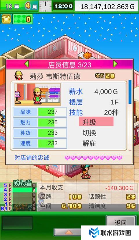 佣金与技能:高佣金店员拥有更多技能,并能通过道具提升技能等级,帮助店铺更好运营。