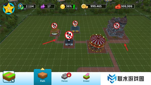 -当你的建筑上没有阻挡前进的图标时,恭喜你,建设成功!这意味着游客们可以顺利畅游你的游乐园。