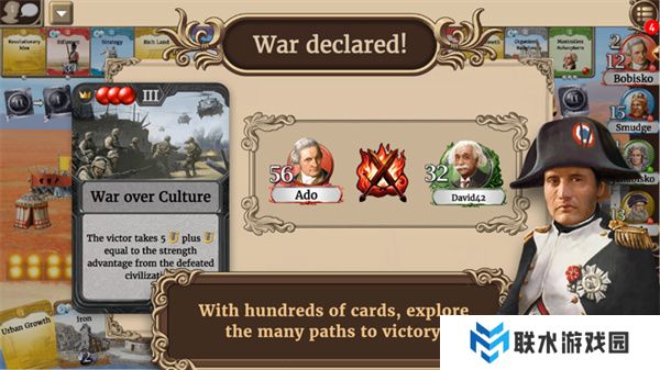 卡牌种类繁多,包括内政卡牌(科技、奇迹、领袖、政体等)和军事卡牌(战争、侵略、协议等)。每种卡牌都有其独特的作用,玩家可以根据不同的战略需求来选择和使用,创造无限的战术组合。