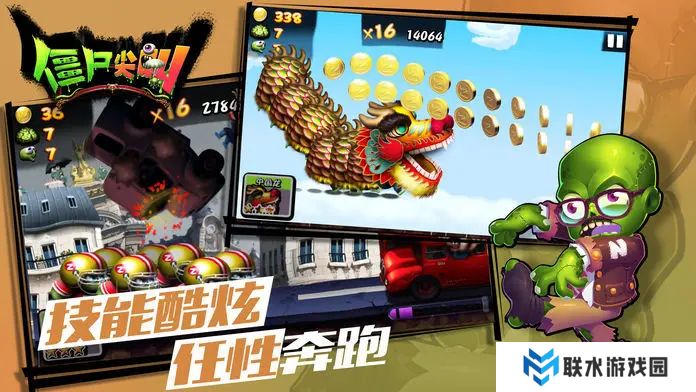 僵尸尖叫是一款与传统僵尸题材游戏不同的创意之作,采用了跑酷元素,将西方夸张搞笑的风格与经典的贪吃蛇模式结合,再融入横板跑酷的玩法,打造出极具趣味性的游戏体验。游戏中,玩家将控制一群僵尸穿越城市,不断吞噬沿途的幸存者,将他们转化为自己的同伴,进而壮大僵尸队伍。游戏设计了多种障碍物,包括炸弹、飞机、轿车等,以及各种增益道具,帮助玩家在游戏过程中获得更高的分数。玩家通过控制屏幕点击的时间,决定僵尸群的跳跃时机和跳跃距离,跳得越远,收获的分数也越高。沿途收集的金币还可以用来升级技能,从而提高跑得更远的能力,进而获取更高的分数。游戏还支持多语言切换,确保全球玩家都能畅享这款极具趣味的跑酷游戏。