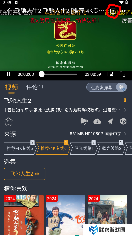 4、然后在播放界面,点击右上方的“TV”投屏标志;