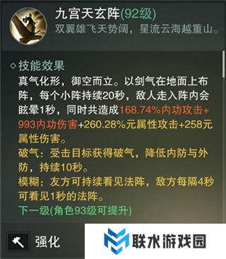 飞上空中后,在技能持续期间可以不断释放八卦阵,对敌人造成连续眩晕,并大幅度降低敌方双防(持续10秒)。