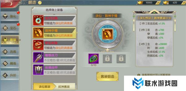1、套装升级:5阶及以上橙色1星装备可锻造成诛仙套装,橙色2星以上还能升级为弑神套装。