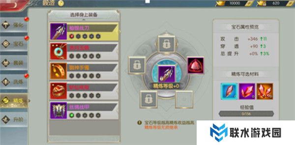 2、精炼材料:使用攻击(长生)水晶可获得精炼经验,水晶等级越高,经验越多。