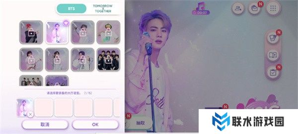 玩家可以选择自己喜欢的艺人,并通过收集、培养和升级艺人卡牌来提升游戏的分数。在每一首歌曲中,玩家需要选择合适的卡牌,利用卡牌的能力来获得更高的分数和奖励。