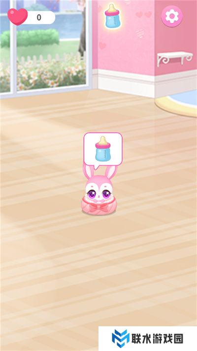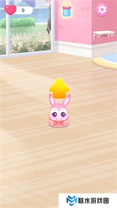 2. 游戏界面上方有一个奶瓶,玩家可以拖动它喂给精灵。