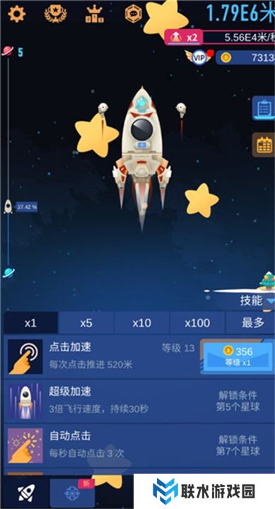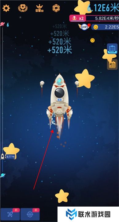 3、收集金币后,点击技能选项,提升火箭的飞行速度。