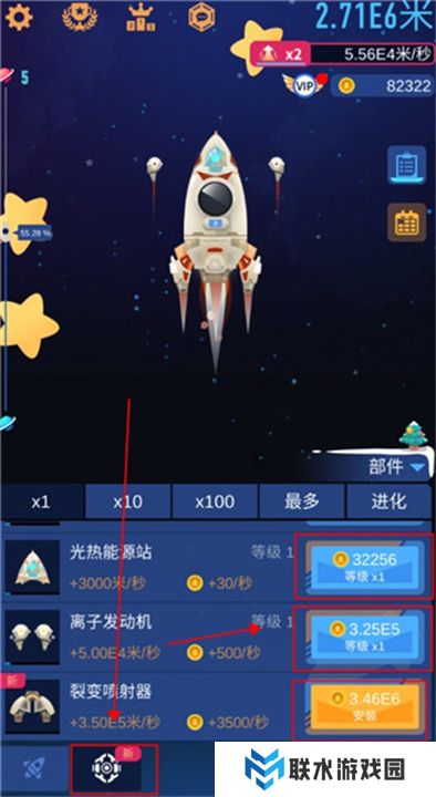 4、进入装备选项,用金币购买各种加速装置,进一步提升火箭飞行效率。