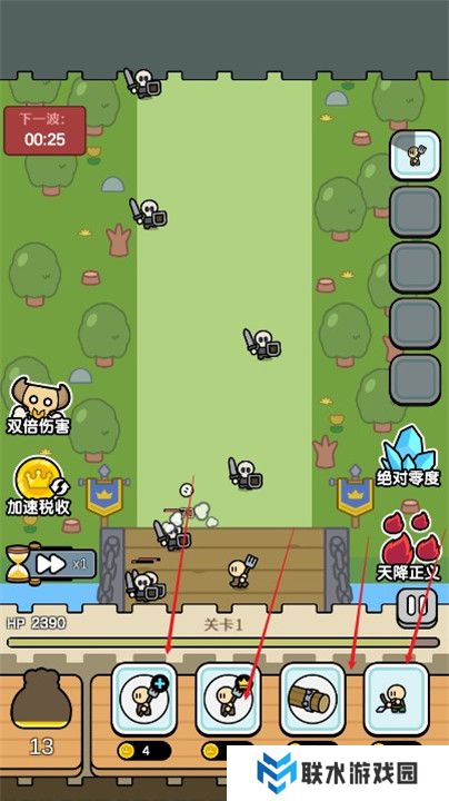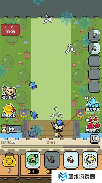 2、打败敌人后你会得到金币,记得用这些金币召唤更多士兵,或者直接升级自己的战力,确保能应对更强的敌人。