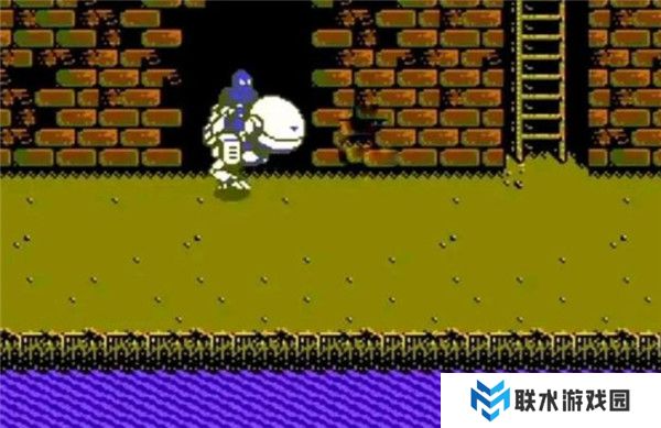 场景描述:在下水道的尽头,皮头从水中跃出,手持武器挑战神龟们。