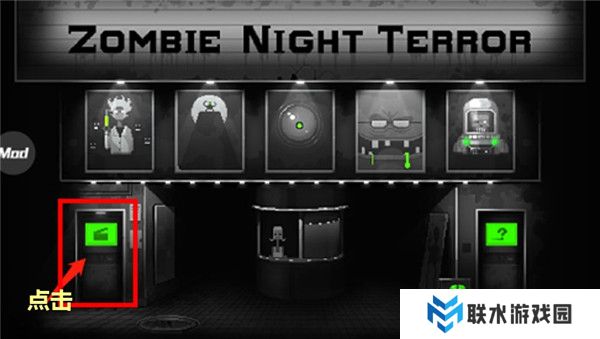 1、首先下载后打开恐怖僵尸之夜,在主界面点击左下角的那扇门图标。