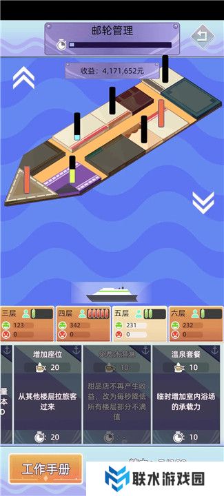 而且可以通过提升楼层的承载力来更好地管理游客流量。例如解锁五层的温泉餐厅和六层的浏览平台,接着根据情况选择其他设施的建造顺序。
