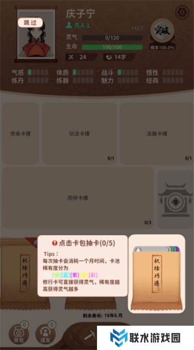 4、每次开卡包,不只有卡牌还有灵气,帮助你进阶。