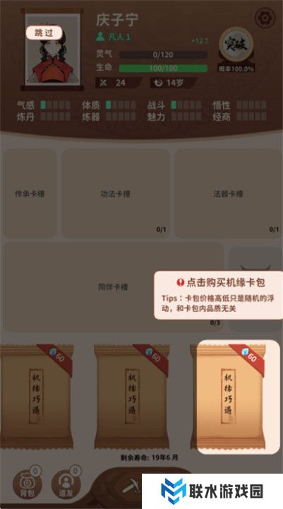 玩家通过购买卡包,可以随机获得强大的道友、技能卡和修炼资源,提升角色的实力,增强战斗力。
