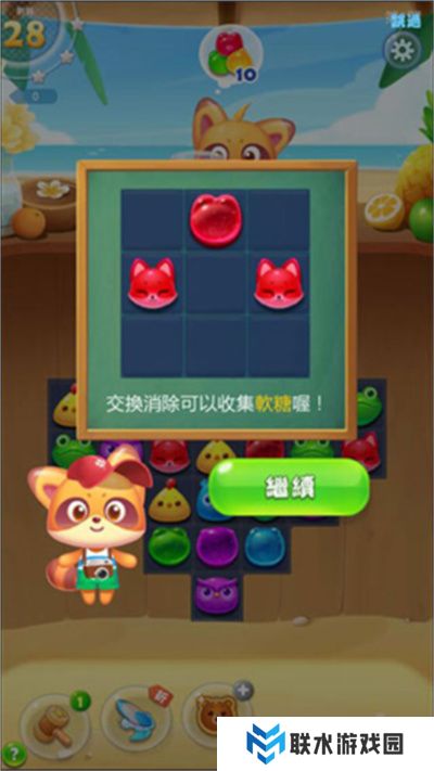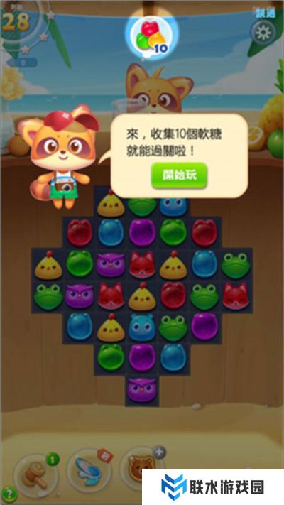 1. 在游戏中,进入关卡后,游戏会提供一些提示,指导玩家通过交换方块消除来收集软糖,这些软糖是本关的收集目标。