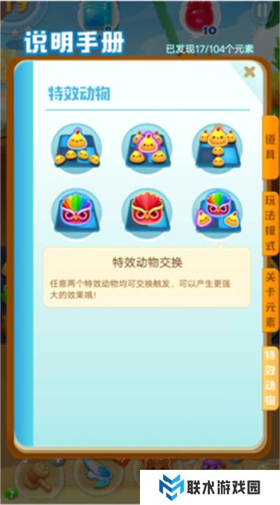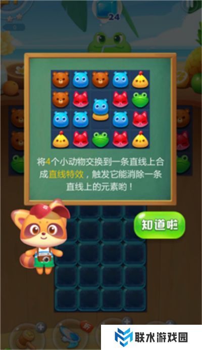 1. 当4个同色动物排列成一条直线时,将激活直线特效。