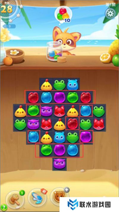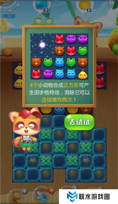 1. 当4个同色动物排列成田字格形状时,将触发田字格特效。