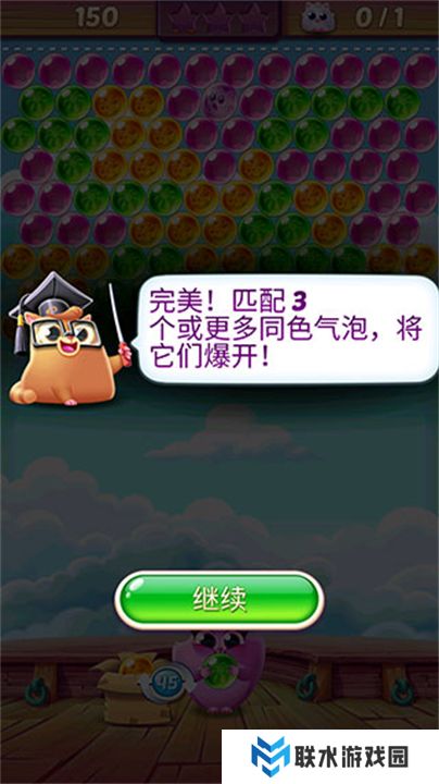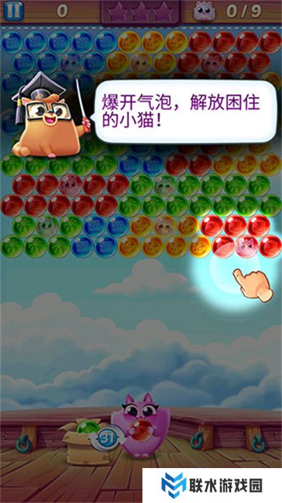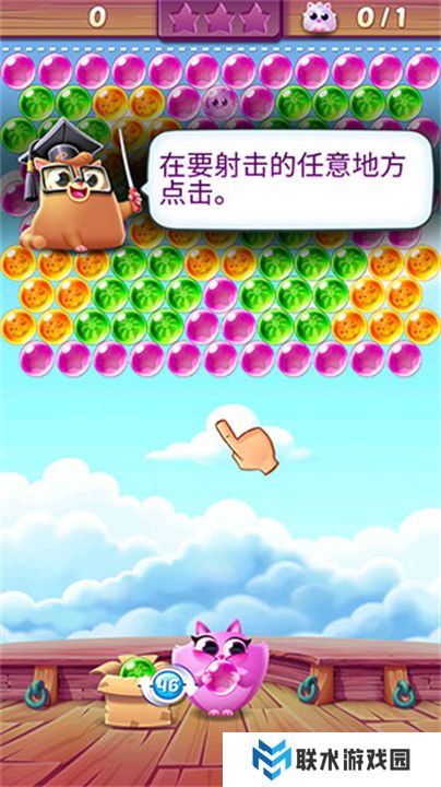 2、在关卡中,通过点击屏幕任意位置发射泡泡。