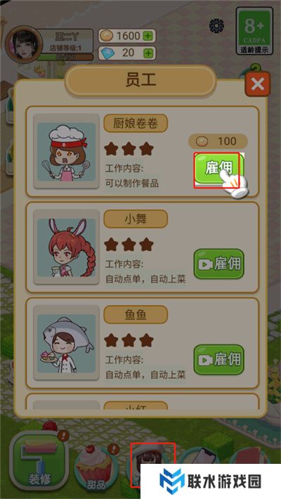 10. 招募完成后,点击甜品解锁新款式,正式开启甜品店。