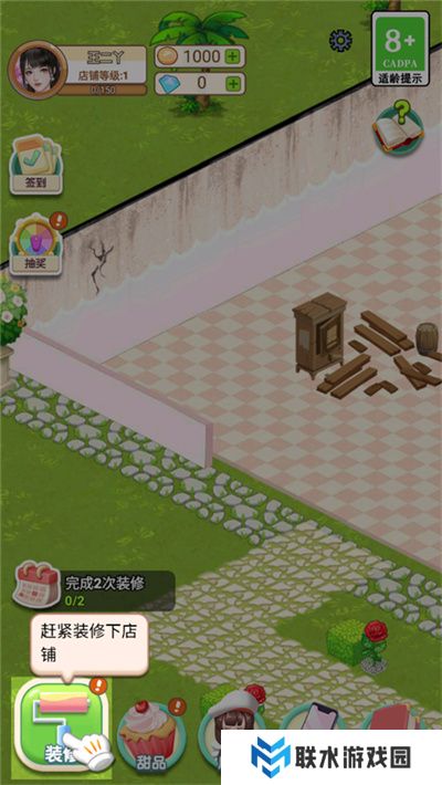1. 进入游戏后,我们会发现店铺有些脏乱,首先点击进行装修。