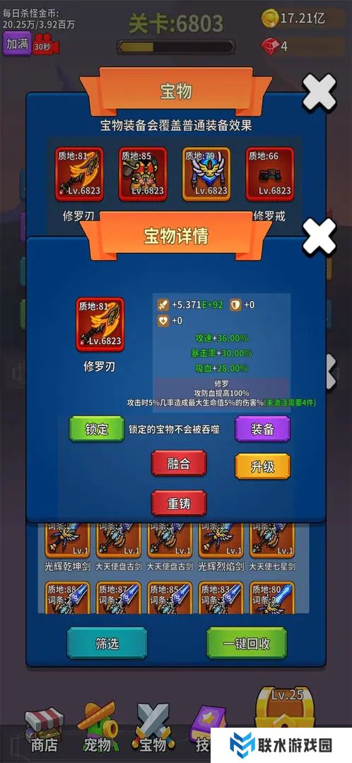7、宝物系统在30级解锁,并通过装备提升。每个宝物最多拥有3条词条。